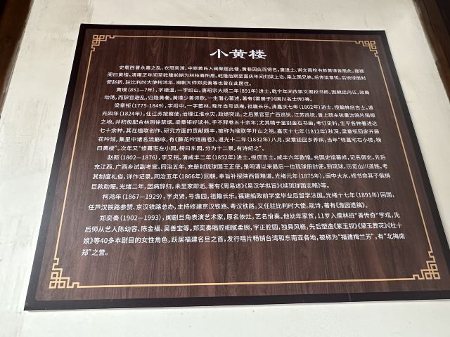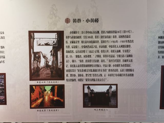 小黄楼,其实是黄璞故居,该故居位于黄巷中段北侧36号,于2006年公布为全国重点文物保护单位现作为中国涉台楹联博物馆,存放有乾隆十六年进士刘墉、北洋军阀首领冯国璋等人的楹联、牌匾百余块。