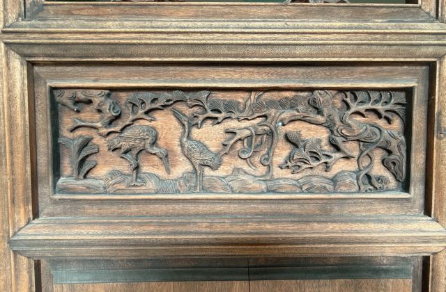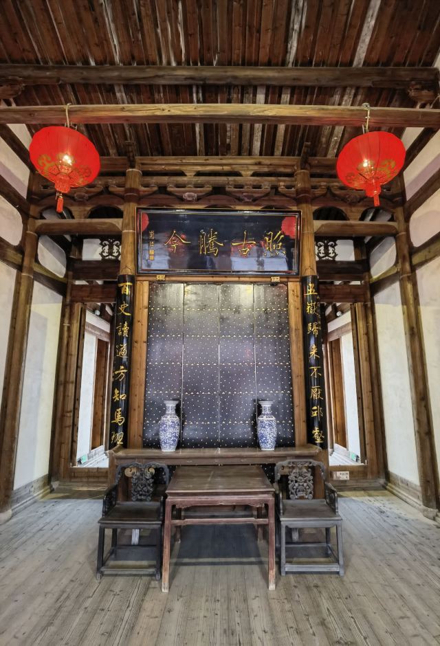 建筑为穿斗式木构,楠木门窗雕龙绘凤。