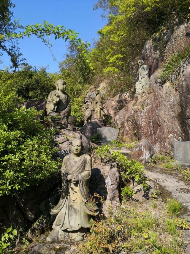 走进蒲竺寺山门,尽览山中胜景,侧耳可听溪畔涧水潺潺,令人平心静气。后山被称为“五百罗汉山”,一条蜿蜒的登山石道直通山巅,沿道两侧供奉着数百尊罗汉石雕。石像布局独具匠心,视山势的高峻、平缓,流泉的大小、流向,隙地面积等条件,因地制宜,精心安排,自然景观与人工布景和谐统一。