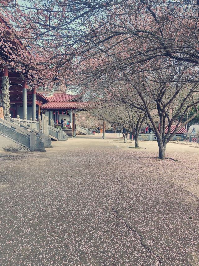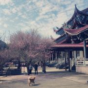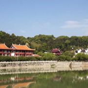 4分 满意从森林公园那里一路绕山路到达,过去的时候已经没有桃花看了,寺庙蛮大的,门口一个大湖,坐在那里很舒服