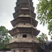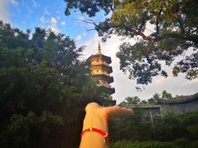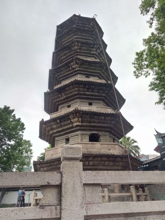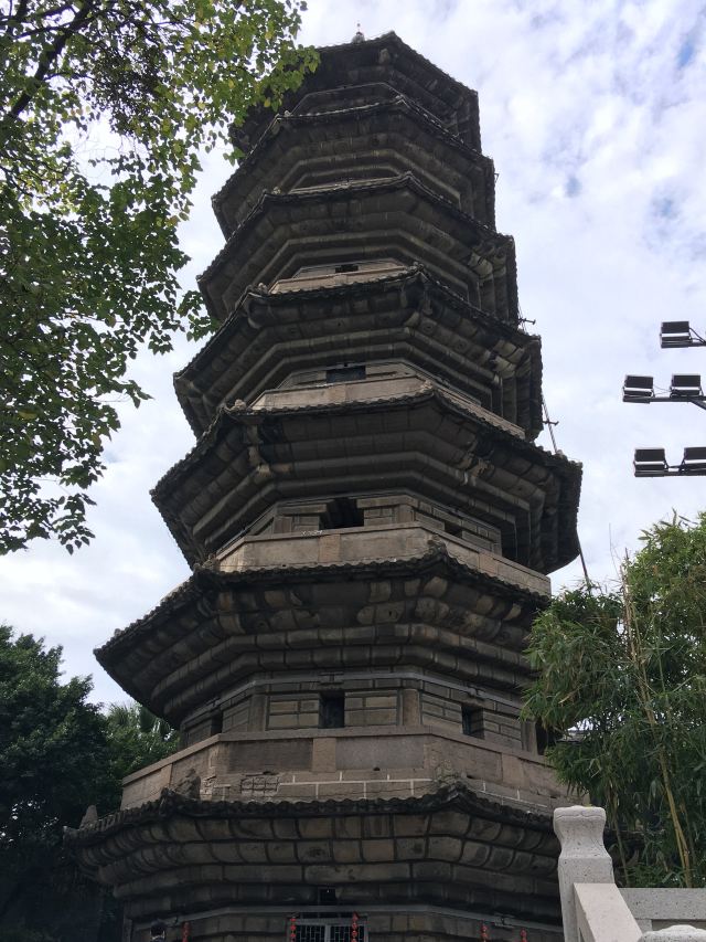 乌塔原名“崇妙保圣坚牢塔”,始建于五代时期,最初为木塔,后遭雷击焚毁,现存的石塔是北宋年间重建的。远远望去,乌塔身形挺拔,八角七层,通身由青黑色的花岗石砌成,在阳光的照耀下,泛着古朴的光泽,给人一种庄严肃穆之感。走近乌塔,你会被它精美的雕刻所吸引。塔身的每一层都设有佛龛,龛内供奉着形态各异、栩栩如生的佛像,有的慈悲祥和,有的庄严肃穆,尽显古代工匠的精湛技艺。塔檐的转角处悬挂着铜铃,微风拂过,铜铃发出清脆悦耳的声响,仿佛在诉说着千年的故事,为乌塔增添了几分灵动与神秘。