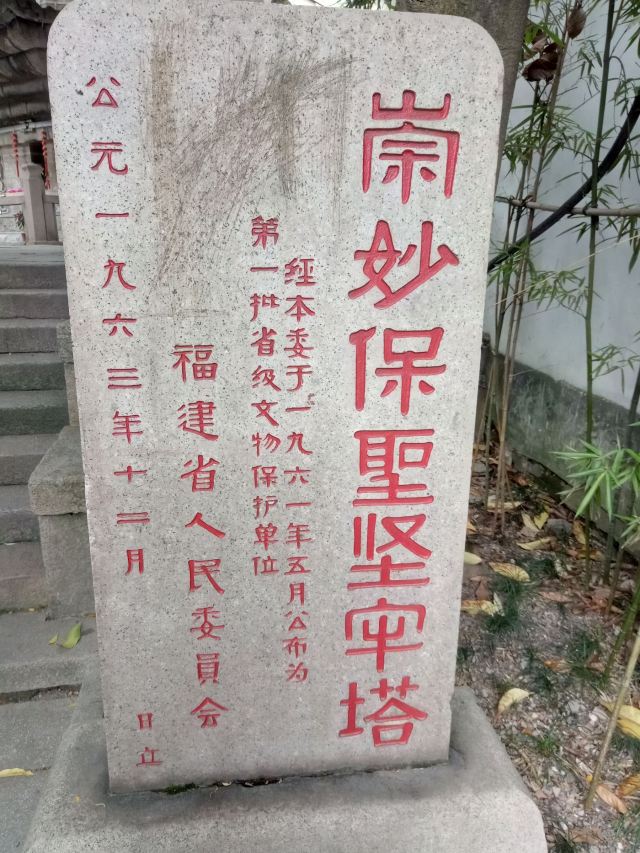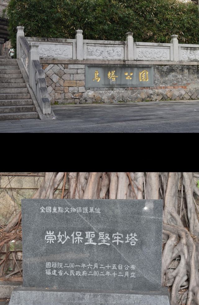 乌塔,全称为 “崇妙保圣坚牢塔”,因塔身为花岗岩青石所砌,呈乌黑色,故称乌塔。乌塔始建于唐贞元十五年(799 年),最近于 1978 年重修,在塔周围设护围石栏杆,重建塔碑亭。亭内《敕贞元无垢净光塔铭》碑,是福建省现存最早碑刻之一。