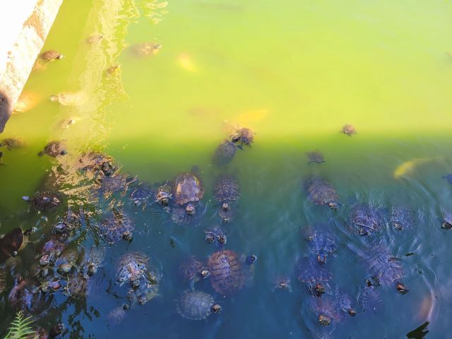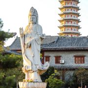 走进正觉古寺,首先因为我眼帘的便是观世音菩萨的雕像,在他的两边有一个池潭池潭里面喂满了金鱼和乌龟。寺庙的工作人员会定期的来给他们进行投喂,他们也会成群结队的过来,享受着每天的美食。