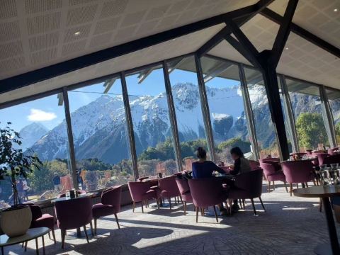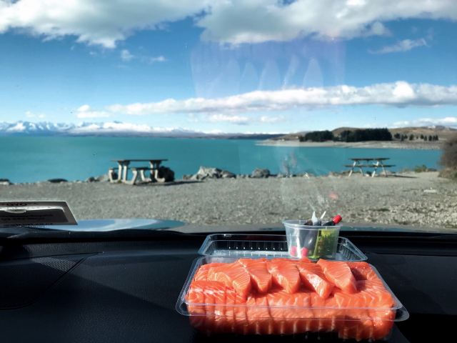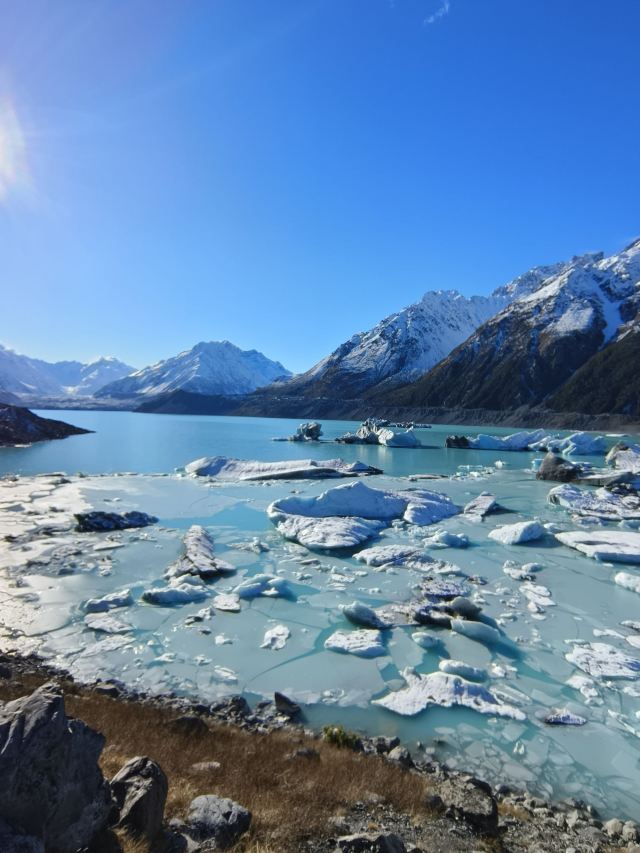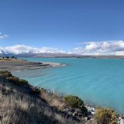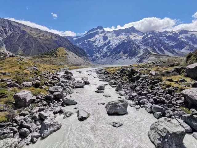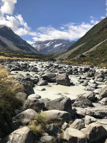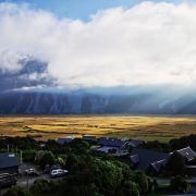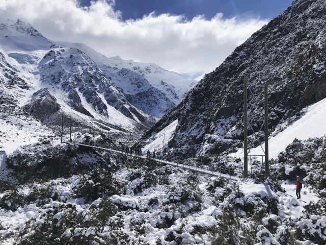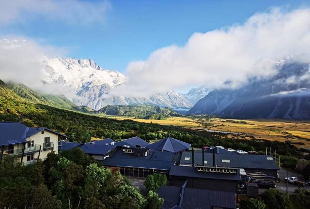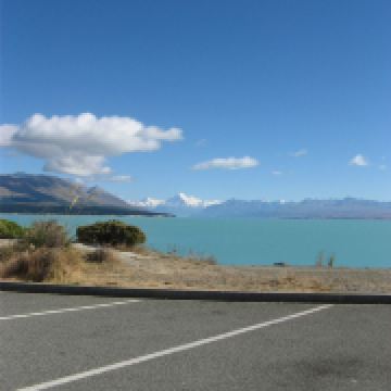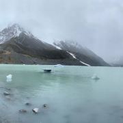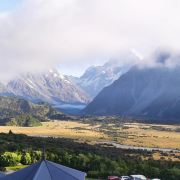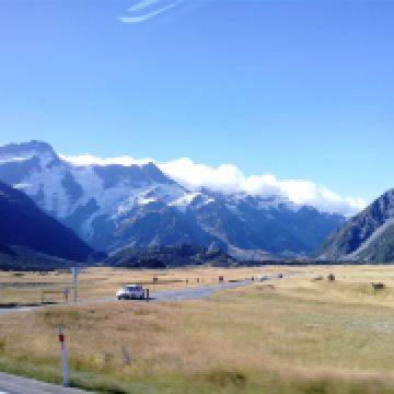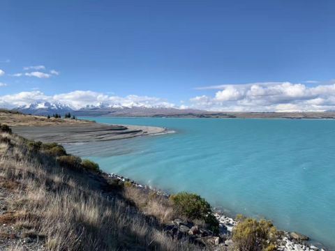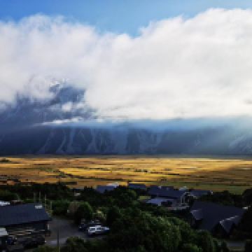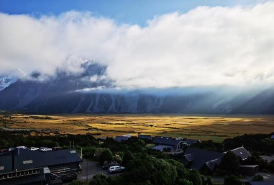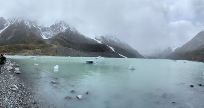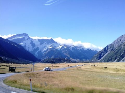 5分 超棒在进入库克山区80号公路起点处的pukaki湖时,还有小段的晴天加多云,行驶了30小时天也阴沉下来,进入库克山刚过库克山机场,天开始下雨了,白雪皑皑的库克山近在眼前。