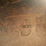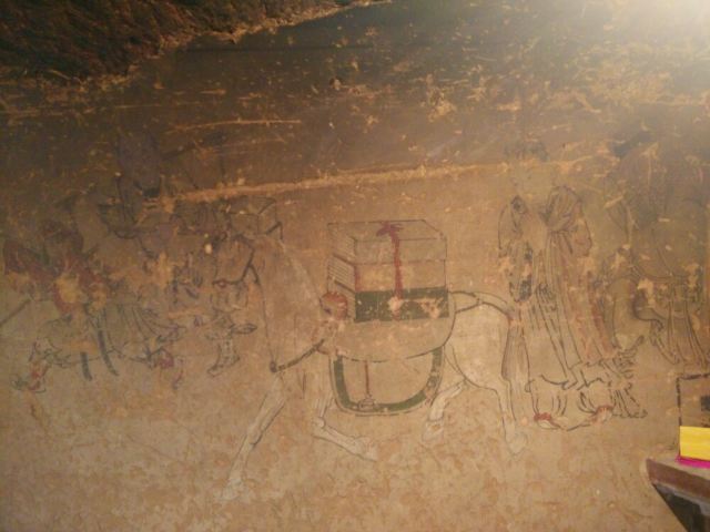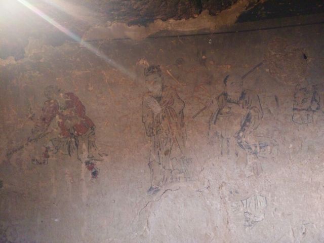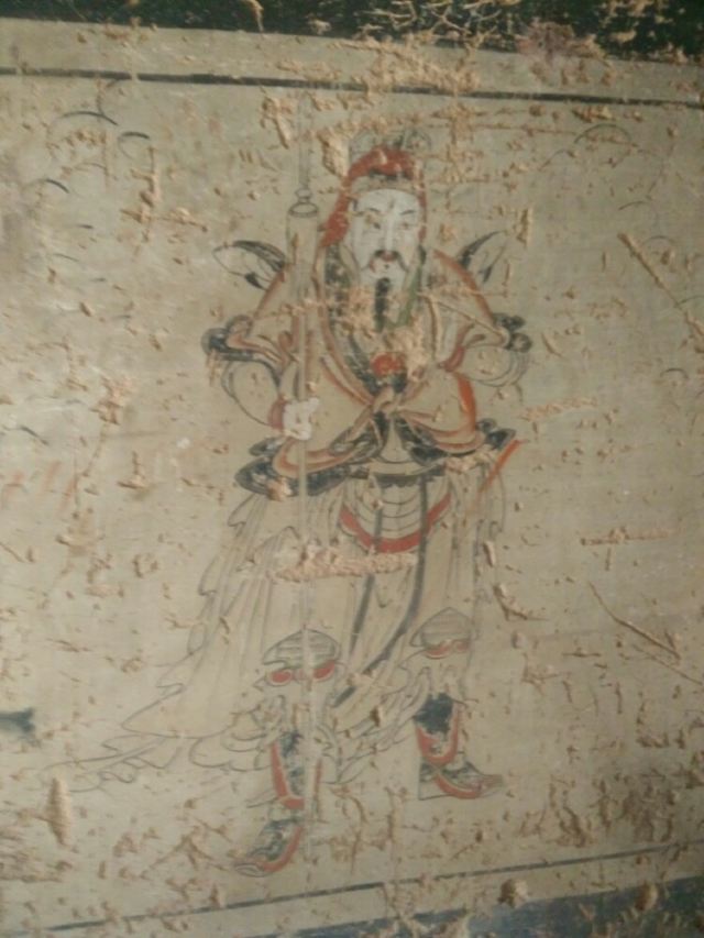 三眼洞由3个互相连通的小洞窟组成而得名,洞壁两侧保存的《唐僧取经图》和《唐僧取经归来图》两幅元代壁画,是华盖寺壁画艺术中的珍品。这两幅壁画中僧徒四人形象完整,与后来出现的明清《西游记》故事绘画极为相似。
