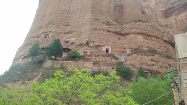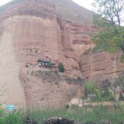 微信小程序从甘谷县城沿316国道向西行,华盖寺石窟位于甘谷县城西10里,渭河南岸的二十铺村东头。因山顶绿草如茵,恰似一顶红教僧帽,戴在状如圆柱的红色悬崖之上,故当地人叫它喇嘛帽顶。又因山势奇特,一峰突起,似刀削斧劈,直入云端,如一把红缦绿顶的华盖依山亭立,山崖以上“之”字形排列的洞窟参差错落,状如蜂房故称华盖洞。