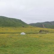 令人称奇叫绝的是,位于玛曲县城以西120公里处有一个叫西梅朵合塘的地方,每到七月中旬,整个草滩上遍开一种叫金莲的小花,放眼望去,绵延数十公里一片金光灿灿,耀人眼目。到八月间,金莲花悄然隐退,代之天蓝色的龙胆花又铺天盖地绽放,整个草滩一片蔚蓝色,如诗如画,人间少有。