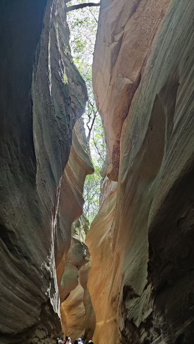 5分 超棒黄土高原腹中,神奇的大峡谷引八方人趋之若鹜,甘泉大峡谷名声日渐嘹亮,入其中,如入蚁穴,寸步难行。甘泉大峡谷位于陕西省延安市甘泉县下寺湾镇雨岔沟,为红砂岩地质,历经千百万年的风沙切割和流水溶蚀、冲刷而成,在陕北黄土高原大体量呈群落分布,国内罕见,有“黄土高原自然地缝奇观”之美称。由于红砂岩在不同季节的含水量不同,对光的吸收和折射率也不一样, 因此甘泉大峡谷一年四季会显示不同的色彩。被誉为“世界活丹霞,中国梦之谷”。甘泉大峡谷据说有一百多条“石缝”,亿万年,依水之柔穿凿出形态各异的艺术精品,我只领教了龙巴沟与桦树沟,何时您来,多游几道沟,分享一下,人太多了,照相难,只能越过人头往上照。