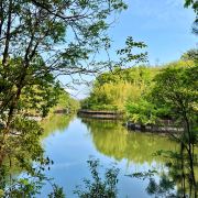 以人文景观为主的游人去过望江亭便可返程,如果时间充裕,可继续往前去现代休闲区逛逛。这里的景观大多是后来人工修建的,比较值得一看的有二十多米的丹崖卧佛、千佛洞和财神庙和岳飞、周敦颐、辛弃疾等赣州历史名人的雕像群。再远些,还有生态迷宫、十二生肖园等一系列休闲游乐点。