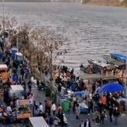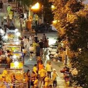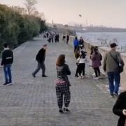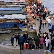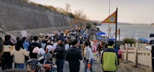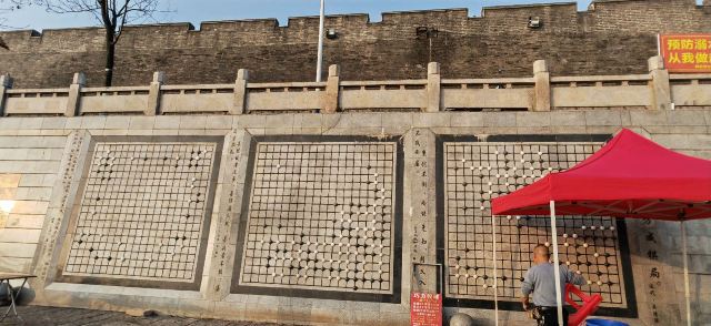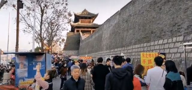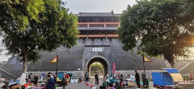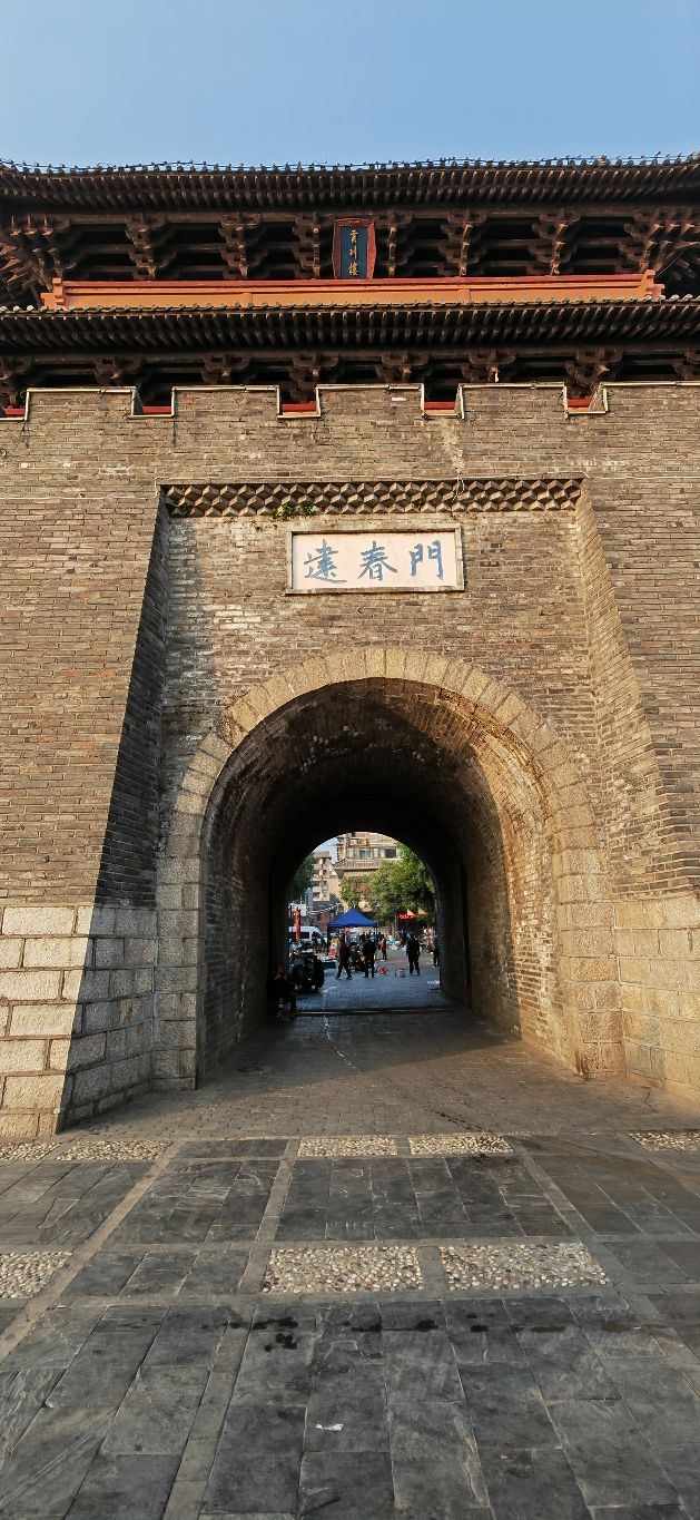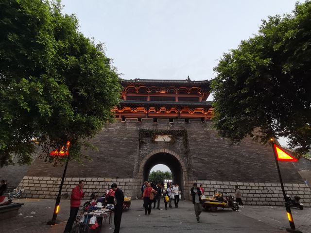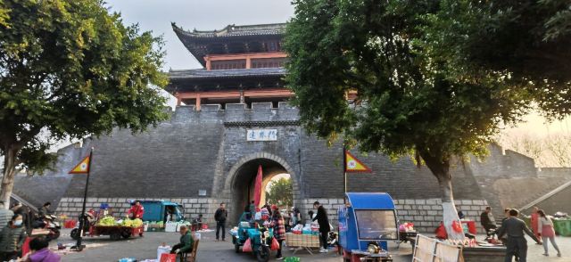 从燥儿巷到建春门十多分钟就可以走到,城门外就是浮桥。而且城门楼下很多小商贩卖当地特产,还有各种休闲设施、各类人等在沿江步道上休闲运动。