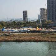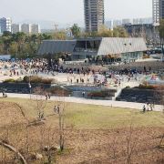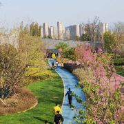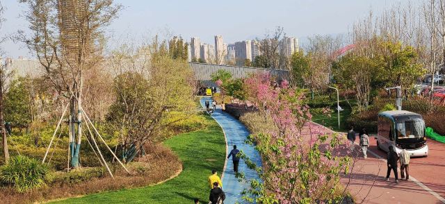 微信小程序蓉江新区滨江公园绿植丰富,种植有樱花树,柳树等,新增了音乐喷泉,吸引很多人前来观看。