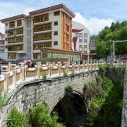 2分 一般相传是文成公主进藏时候修的桥,目前是康定老城到新城的必经之路,折多河从此穿过,桥对面是跑马山,此桥是交通要道,车流量很大,318国道和康定城区道路也在此交汇。旁边修了一个步行栈道!