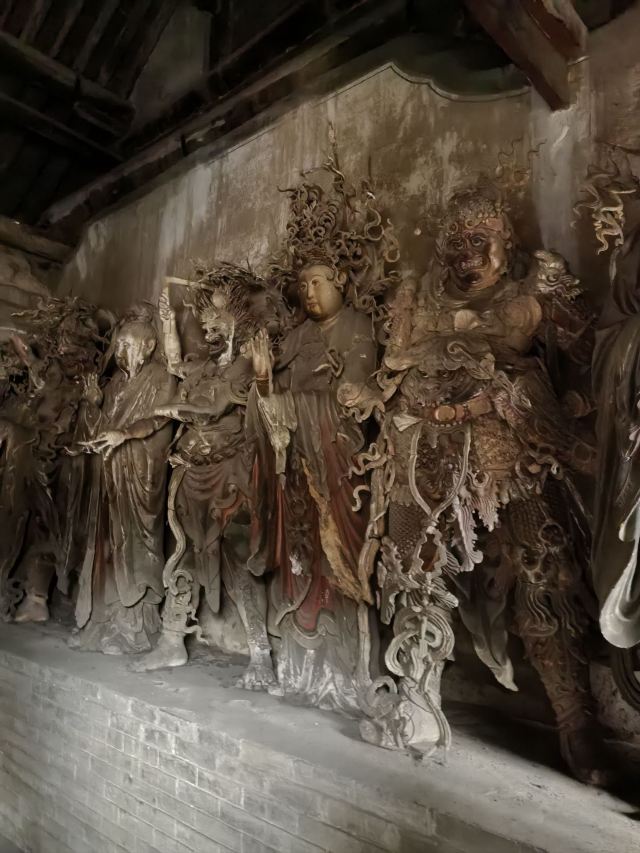 • 🎭彩塑艺术震撼心灵:正殿内明间及东西山墙下辟有佛坛,正中塑一佛二菩萨,两侧为二十四诸天,扇面墙塑观音,背后悬塑西游记故事。这些塑像造型奇特、技艺精湛,是泥塑造像中的珍品,世所罕见。更是黑神话悟空著名的取景地之一。