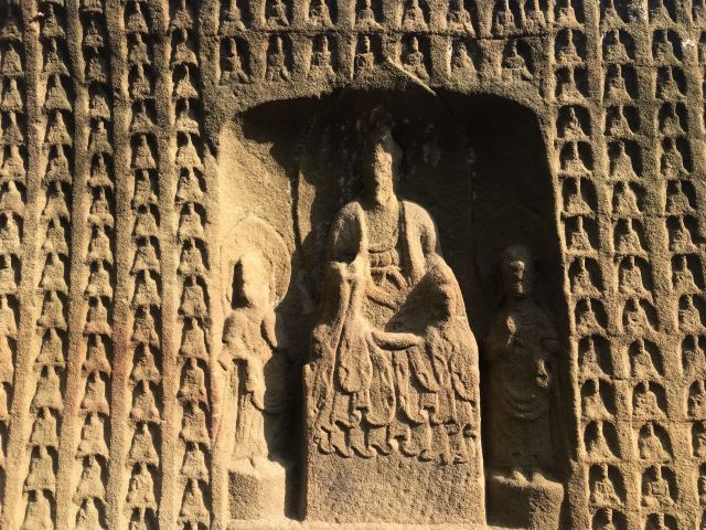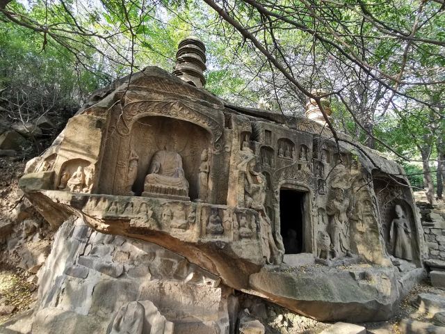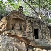 西南山巅(亦称右峰)“八十八佛”窟,距羊头石龛二百余米,列作二区。第三区为千佛洞,第四区为方塔窟区,第五区为圆塔窟区,第六区为多宝龛窟区,第七区为大石窟龛区,第八区为佛山区,第九区为唐代龛区