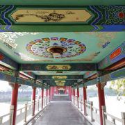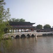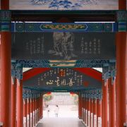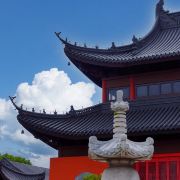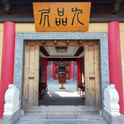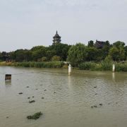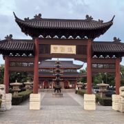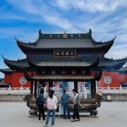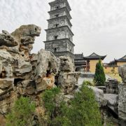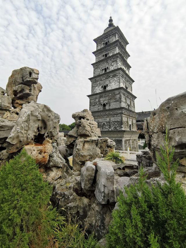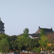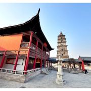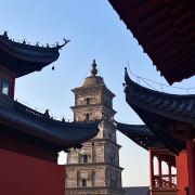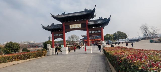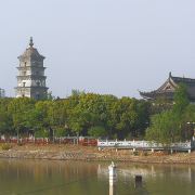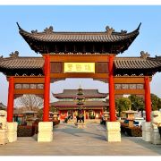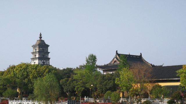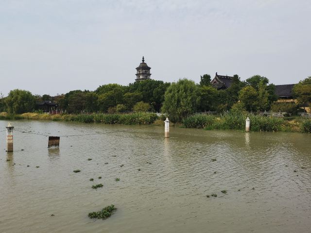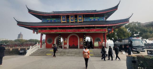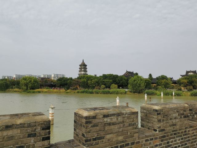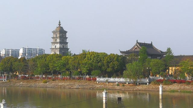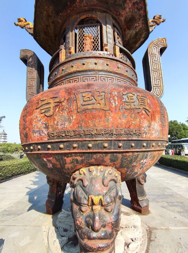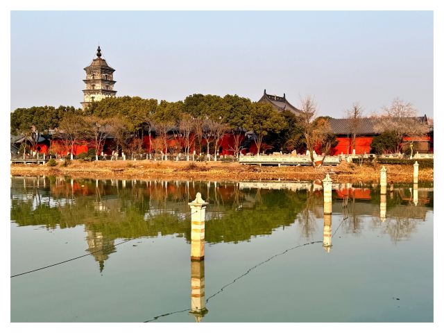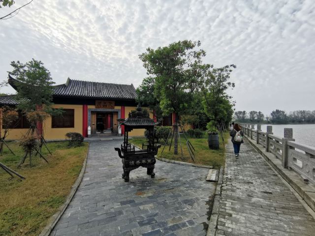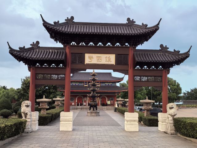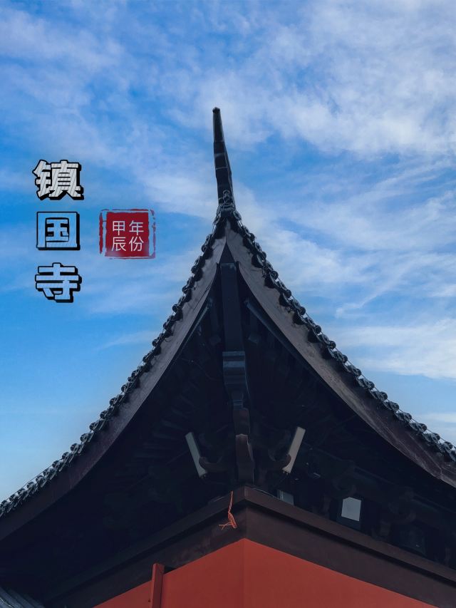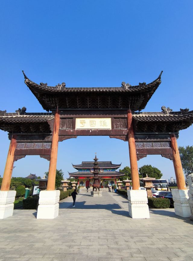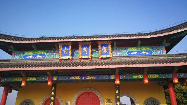 一座坐落于京杭大运河河心岛上的庙宇,就是镇国寺。