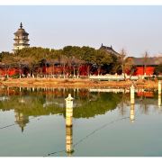 古朴端庄的镇国寺在孤岛上屹立,落日映照更是好看,来了高邮,除了瞧瞧悠久的盂城驿,也记得来拜拜佛,看看镇国寺的风范吧。