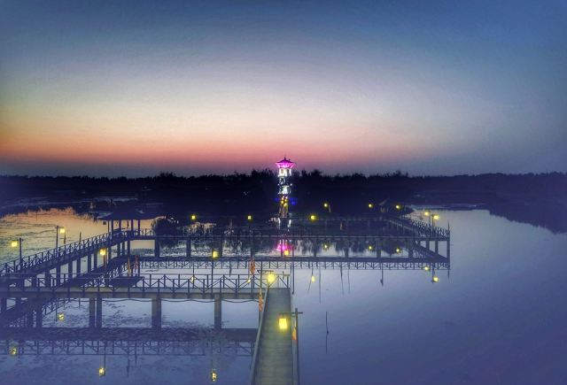 高邮湖芦苇荡湿地公园位于江苏省高邮市界首镇的高邮湖畔,主要打造综合服务区、水上文化区、科普展示区、湿地保护区、芦丛活动区、水上探险区、核心休闲区等。核心区还包括湖心宾馆、休闲会所、特色餐饮以及游客互动、渔家风情、自助烧烤、回廊栈道、水上冲浪等娱乐设施,逐步形成集“飞碟文化、滨水娱乐、渔村文化、养生休闲、湿地科普”于一体的生态旅游风景区。故被人们誉为“天然氧吧”。