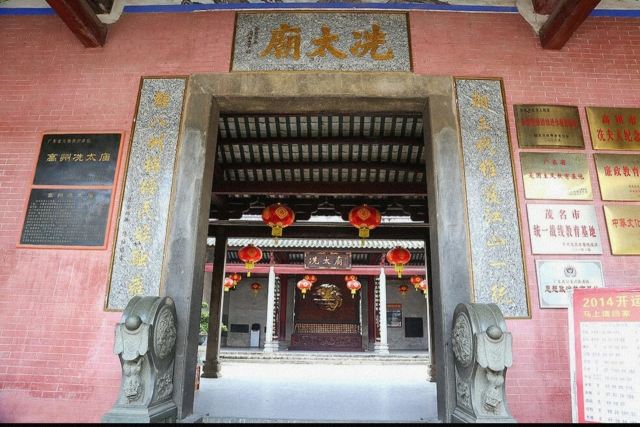 高州冼太庙位于高州市文明路,潘州公园北面。明嘉靖十四年(公元1535年)始建,嘉靖四十三年和清同治年间先后重修,是高州地区规模较大、等级较高的冼太庙。冼太庙主体建筑共三进,总进深49.5米,总面阔13.4米,建筑面积826.3平方米,分前殿、中殿、正殿。砖木结构,红墙绿瓦,斗拱飞檐,装饰华丽,运用彩绘、堆塑、雕刻等艺术形式,表现出浓郁的民族风格和地方风貌。