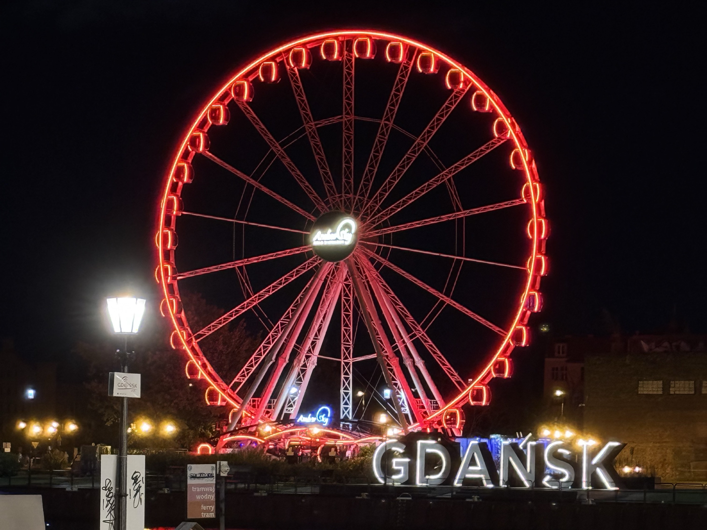 位于波兰格但斯克滨海省的市中心小岛Ołowianka,AmberSky摩天轮宛如一颗晶莹的琥珀,在古老的码头与红瓦屋顶之间静静转动。步入码头边的登轮台阶,乘坐密闭的观景舱缓缓升起,城市的屋脊、教堂尖顶、船只桅杆、港口水面,都在视野中铺展开来。随着轮舱缓慢旋转,你会从高处俯瞰这座海滨城市的风景:旧城的砖红屋顶、古老起重机静静守望港湾、游艇在水面轻轻摇曳。在傍晚时分,夕阳将古城染成金黄,摩天轮亮起灯光,倒映在河面中,形成一幅浪漫却沉静的城市剪影。AmberSky十年前成为格但斯克的地标之一,象征着这座港城从历史积淀走向当代探索的新维度。乘坐其中,你不仅可以看风景,更像是在搭乘一段城市的记忆之旅。