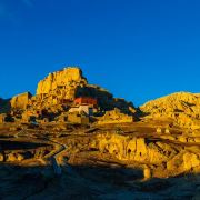 古格王朝遗址-红殿位于阿里地区,是古格王朝的重要历史遗迹之一。古格王朝曾是历史上一个繁荣的王国,其遗址坐落在象泉河畔的土林地貌之中,展现了当地的辉煌文明。古格王朝遗址-红殿是遗址中的一座重要建筑,以其独特的建筑风格和精美的壁画而闻名。殿内的壁画保存了丰富的宗教和历史内容,描绘了古格王朝时期的宗教仪式、生活场景以及神话故事。这些壁画不仅是艺术珍品,也是研究古代当地宗教文化和社会生活的重要资料。古格王朝遗址-红殿的建筑结构体现了古代藏式建筑的特点,使用了当地的建筑材料和工艺,展示了古代工匠的智慧和技艺。游客在参观这里时,可以感受到浓厚的历史氛围和宗教神秘感。