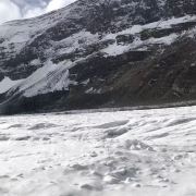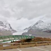 哥伦比亚冰原(Columbia Icefield),位于加拿大不列颠哥伦比亚省和亚伯达省交界处,是落矶山系中第一大冰原。冰原介于西部海拔3,747公尺(12,294呎)的哥伦比亚山和东部海拔3,491公尺(11,452呎)的阿萨巴斯卡(Athabasca)山之间。南部有贾斯珀(Jasper)国家公园,东部有公路通往亚伯达省的班夫(Banff)国家公园。冰原山脚下有游客中心和大停车场。购票后坐大脚车(轮子巨大的汽车)上山,到冰原后下车活动半小时,只能小范围走走,拍拍照。我们是带着钉爪鞋上去的,不然走都不敢走。