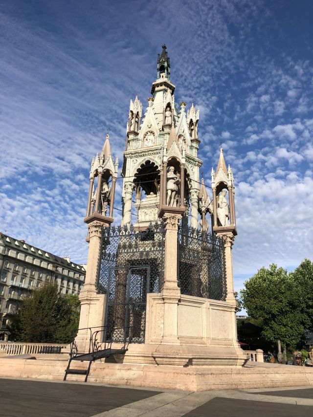装饰华丽的陵墓就在勃朗峰码头旁,埋葬的是布卢斯维克公爵查里二世,他一生的后三年在日内瓦生活,并将所有遗产献给了日内瓦,作为回报日内瓦为其建此仿效14世纪意大利维罗纳的史卡利杰式样的陵墓。