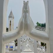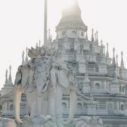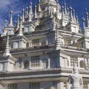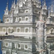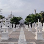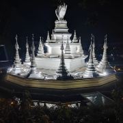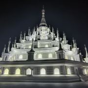 5分 超棒• 外观设计精美:勐焕银塔以银白色为基调,塔高66米,直径46米,塔身遍布精美的雕刻,展现出傣族文化的细腻之处。其建筑风格融合了傣族、景颇族等少数民族文化元素,80个小塔环绕主塔,每个塔尖都由傣银打造,独具特色。