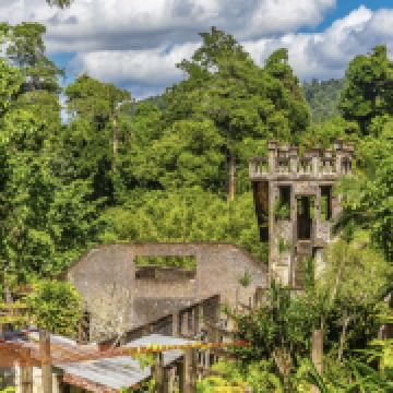 帕罗尼拉公园是30年代兴建的一座西班牙城堡公园,是传说中日本动画大师宫崎骏制作“天空之城”的灵感源泉。公园被翠绿茂密的雨林包围,让人有一种置身于童话世界的感觉。还有气势磅礡的瀑布、笔直壮观的树林大道。仙境般的景致使公园成为澳洲三大婚礼场地之一。建筑背后却是一位西班牙人的梦想故事。西班牙人荷西﹒帕罗尼拉为了实现小时候一个建城堡的梦想,独自从西班牙来到澳大利亚工作生活,用他毕生努力,将一片荒地徒手创造出与大自然融合的西班牙城堡花园。除此以外,荷西也是昆士兰第一位引进水力发电科技的人,时至今日,水力发电机还能够提供整个公园的电力。70年代在种种困难下公园荒废将近15年,荷西的梦也逐渐被遗忘。公园终在1993年重开,荷西的梦也再一次得以延续下去…公园位于凯恩斯以南120公里,路程约1.5小时。园内的中文导览将带领着游客进入他的梦想庄园,让游客重拾那个被遗忘的梦。