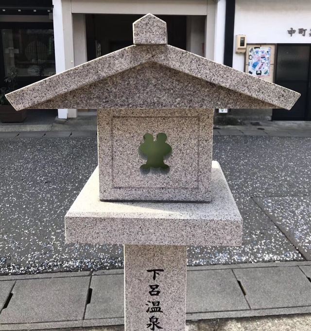 4分 满意在下吕泡温泉,吃美食,逛下吕温泉大道,真正的悠闲游,下吕除了温泉大道,还有一条温泉老街,小小的老街,石子铺的路,加惠瑠神社就在老街上,小小的不大,但非常可爱,到处都有青蛙,灯柱上有青蛙的样子,神社旁边还有三只石头青蛙,非常可爱,幡旗上也印着青蛙