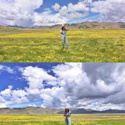 羊湖往浪卡子县方向,沿着湖边公路一直往前,成片的野花就在路边。