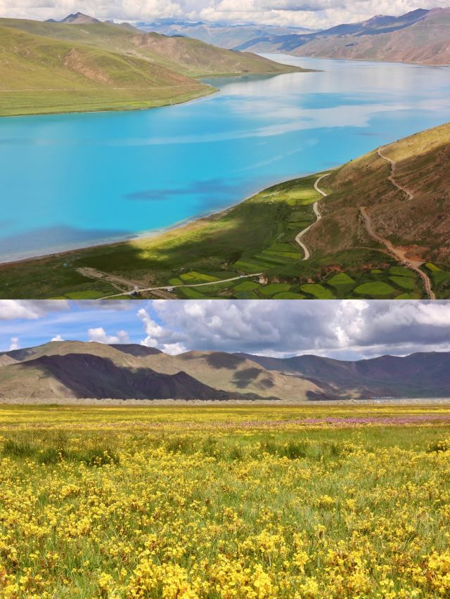 你见过被鲜花包围的羊湖吗?一旦进入夏天,这里犹如仙境!这是我第六次去羊湖,西藏三大圣湖(纳木错、玛旁雍错、羊卓雍措),羊湖是离拉萨市区最近的一个圣湖。
