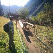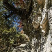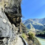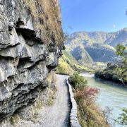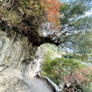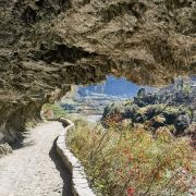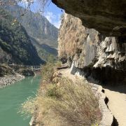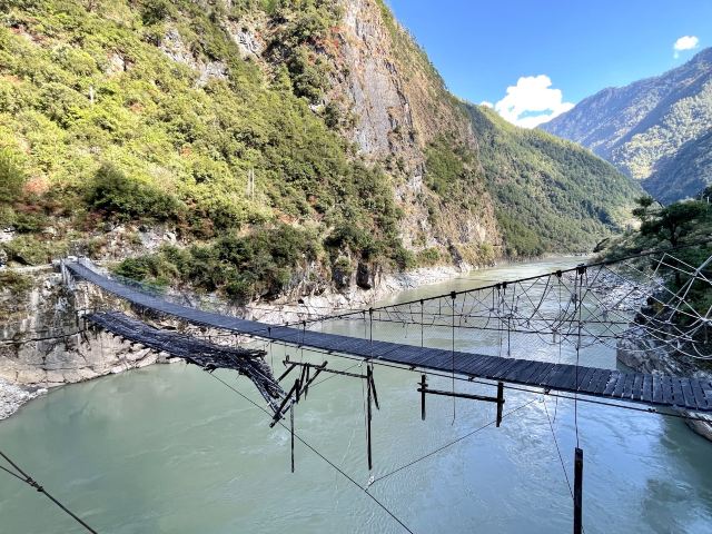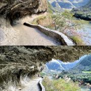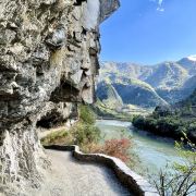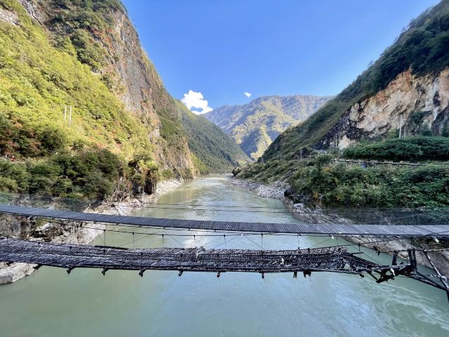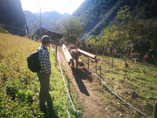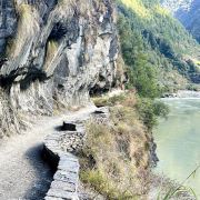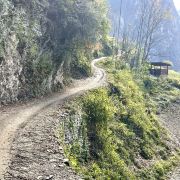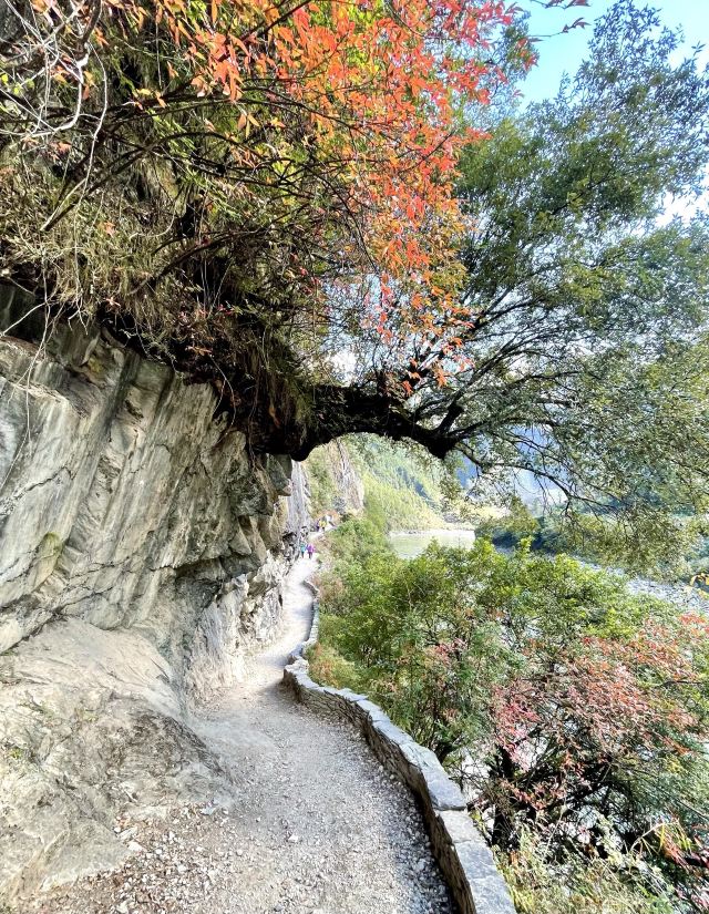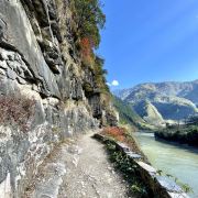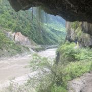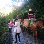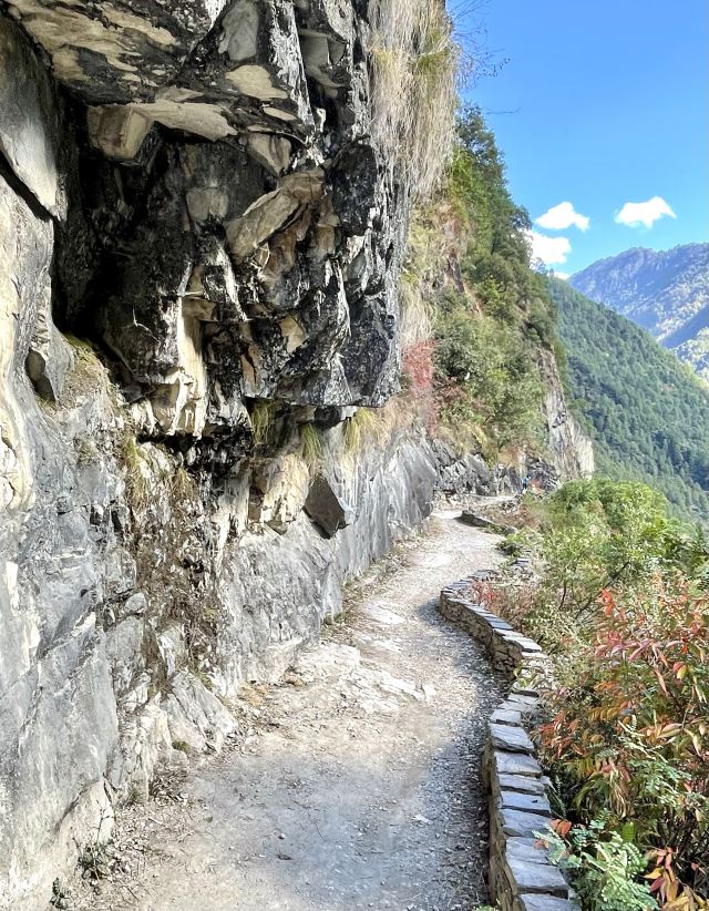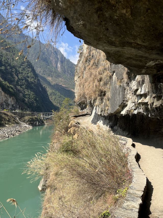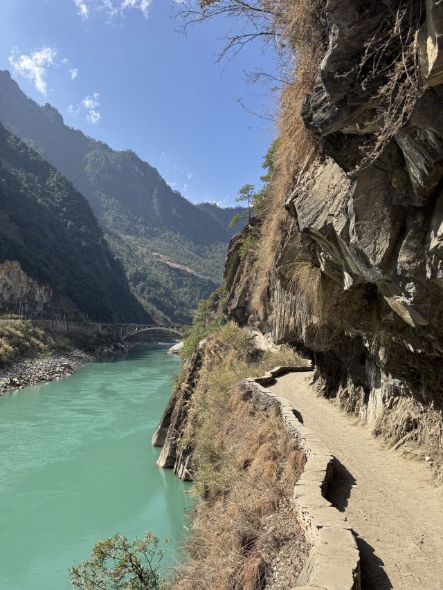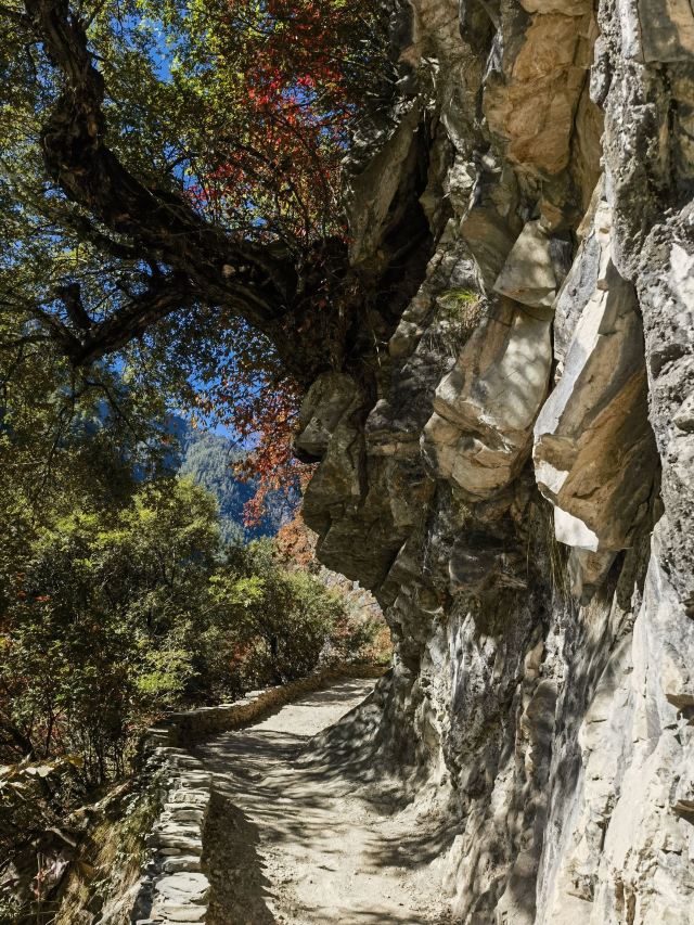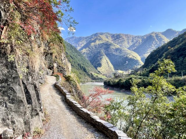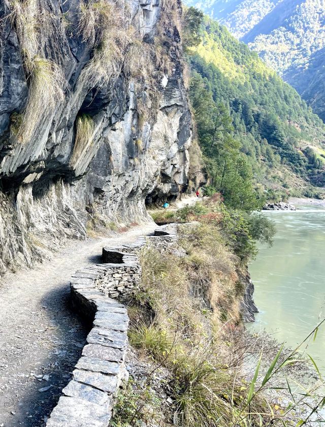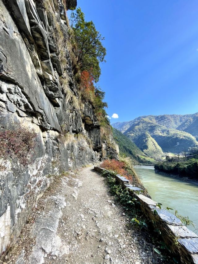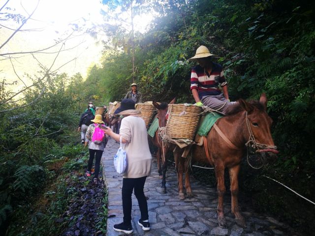 课本里的茶马古道路途凶险,它们大多在悬崖上,下面就是滔滔江水,又没有安全措施,古代马帮走起来要十分小心。雾里村的茶马古道随山而建,离江面非常近,不过有植被作掩护,走起来有一点都不害怕。在公路发达的今天,雾里村至今没有通车,所以村民进出运货仍使用这条上千年的古道。