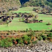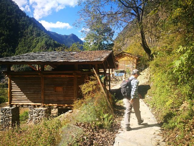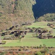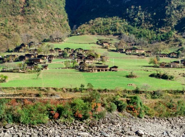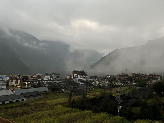 沿茶马古道走大概2公里,就到达雾里村。这里曾被《国家地理杂志》评为云南100个最美观景拍摄点。村里一共有60多户人家,散落在山脚下。他们的房子和汉族人的房子不同,整个房子分三层:一层储工具杂物,二层住人,三层晒东西用。