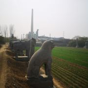 永裕陵南神门两侧的两座石狮雕刻精美,两者相对而视,张口怒目,威武雄健。狮子脖子上挂着铃铛,并系有一条铁链搭在背上,腿部肌肉感十足,大步向前,充满活力。这也是宋陵石狮造型中较为成功的作品。