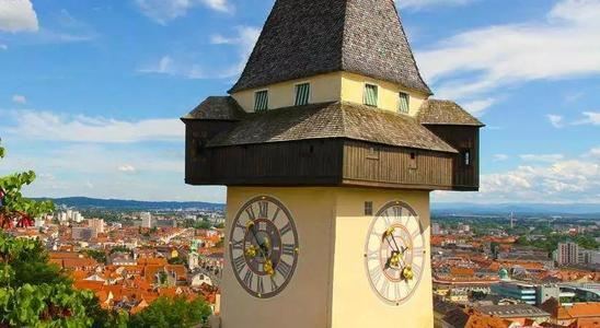 矗立在城堡山上的大钟塔是格拉茨的标志性建筑,在城区的任何地方都可以仰望到这座美丽的钟楼和清楚看到时钟标记的时间。数百年来,大钟每天敲响三次(7:00、12:00和19:00),每次都响101下,提醒着人们它是由101枚炮弹铸造而成的。