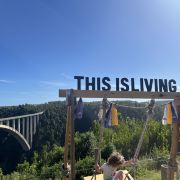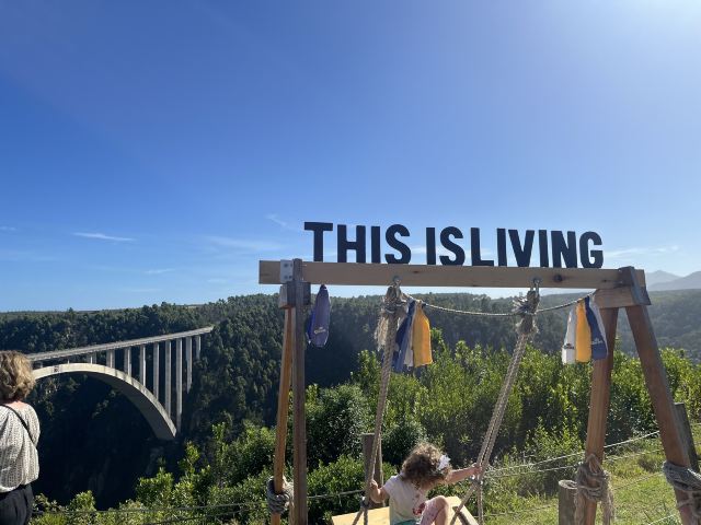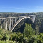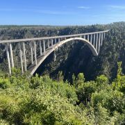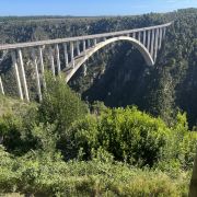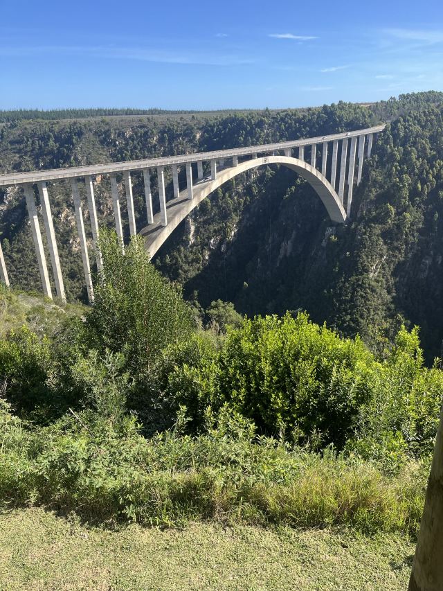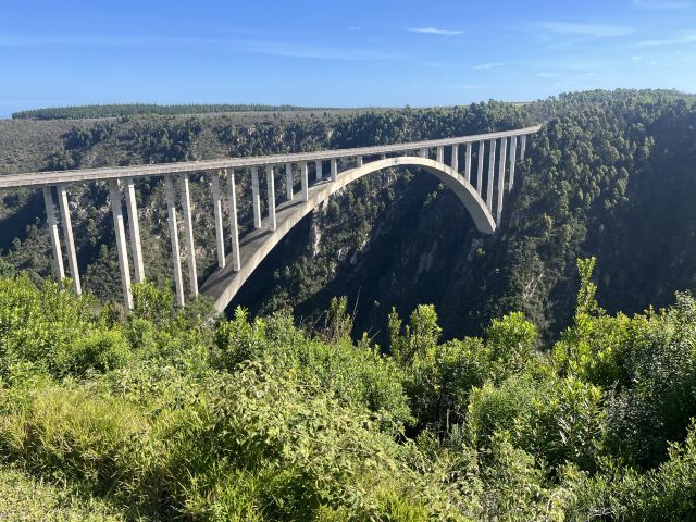 4分 满意南非跟团旅游来到Bloukrans Bridge - World's Highest Bungy (布劳克郎斯大桥),主要是来看世界上最高的蹦极点,本团团友以老年人居多,无人参加蹦极,到达时也无人蹦极,十多分钟后离开。此蹦极地点位于南非花园大道的齐齐卡马地区,在东开普省和西开普省的边界处的N2公路上的布罗克朗斯桥。