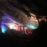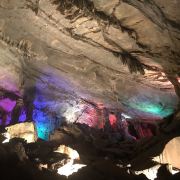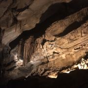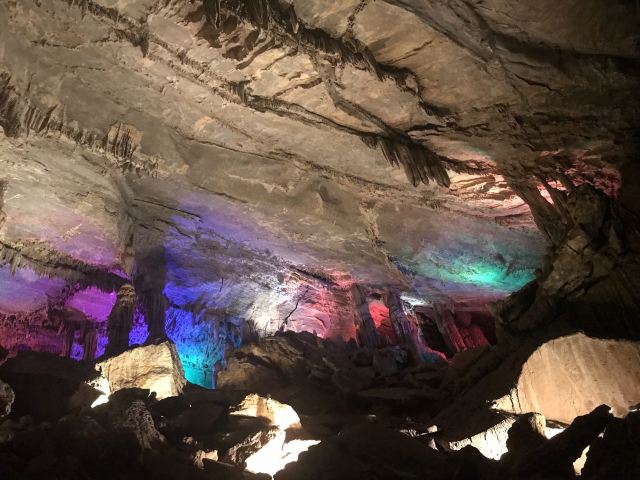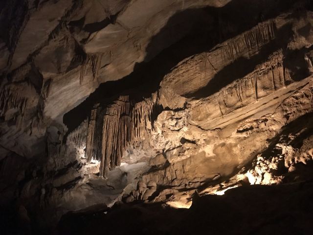 Penn's Cave是一个受欢迎的旅游胜地,石灰岩地层具有天然的奇趣。该洞穴的长度约为1300英尺,洞穴顶板的高度可达溪流表面以上55英尺。