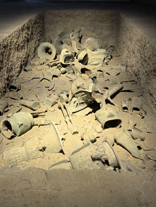 丝绸痕迹:多座祭祀坑检测到丝绸残留,证明三千年前已“穿金戴锦” 。