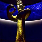 三星堆国家考古遗址公园内的展览馆展示了大量出土文物,包括青铜器、金器、玉器和陶器等,这些文物以其独特的造型和精湛的工艺,揭示了古蜀文明的辉煌与神秘。游客可以通过多媒体展示和互动体验,深入了解三星堆的历史背景和考古发现的重大意义。