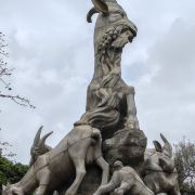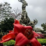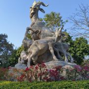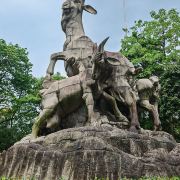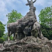 五羊石雕位于越秀公园内,是广州市的标志,也是“羊城”名字的由来。五羊石雕源自一个美丽的传说。传说中以前广州这里非常荒芜,人们也不得温饱,有五位仙人骑着口含谷穗的五只羊飞到了这里,把谷穗留给了广州人,祝愿这里年年五谷丰登,然后驾云腾空而去,羊则化为了石头,广州从此变成了富饶之地。
