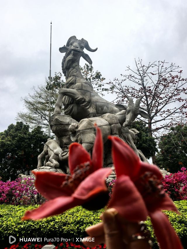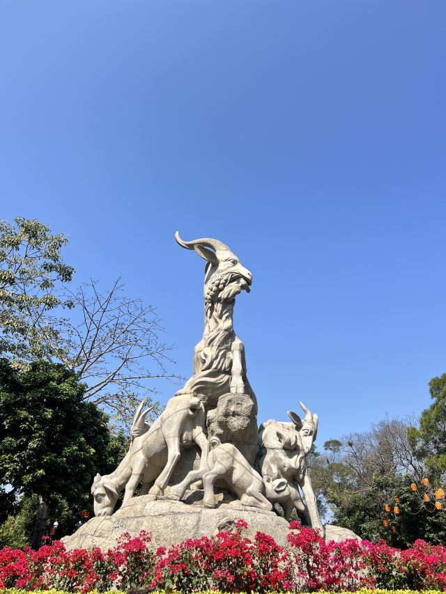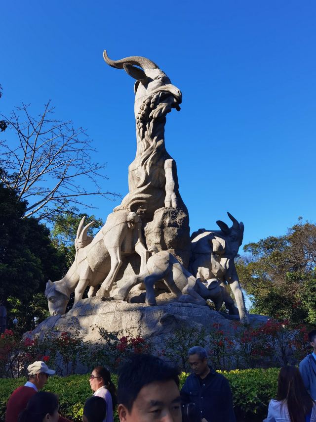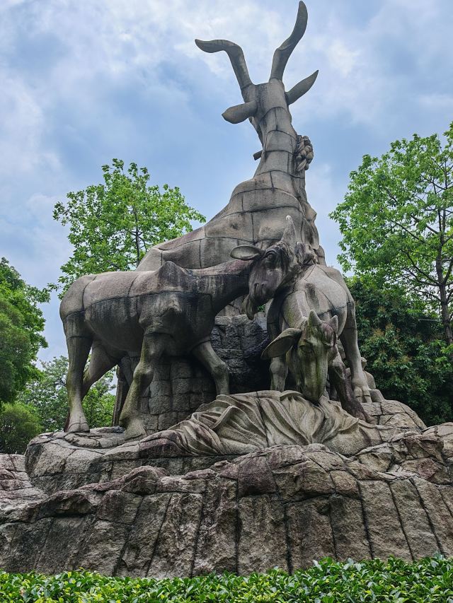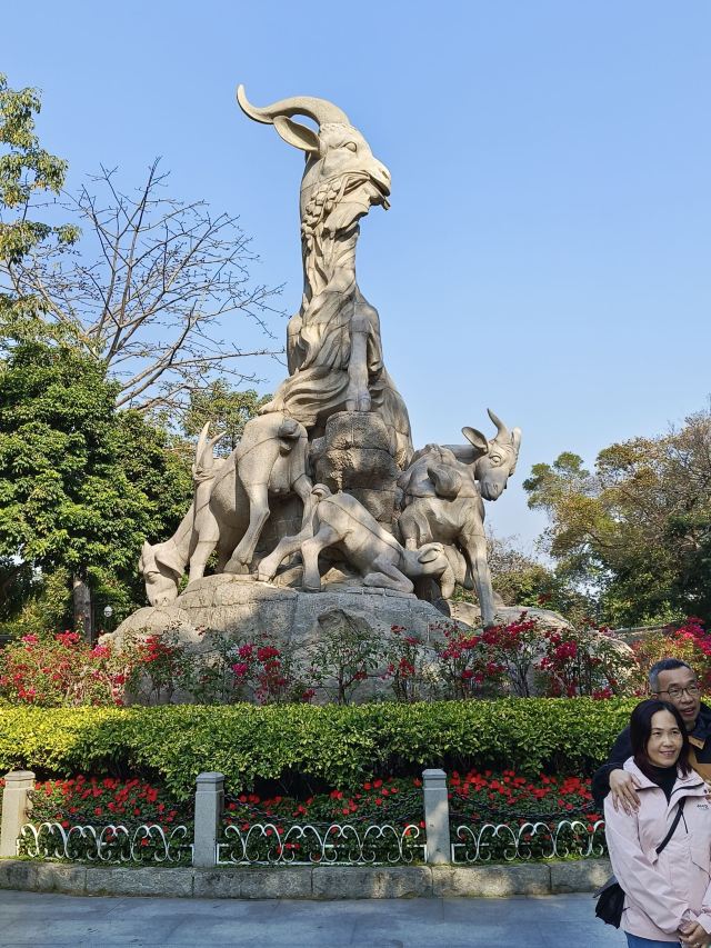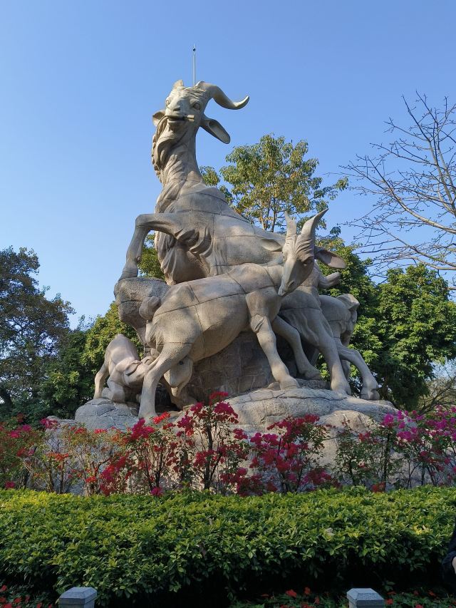 五羊石雕建于1960年4月,雕像高11米,用130块花岗石雕刻而成,是美好传说的纪念,旁边还有个五仙人雕塑,可以一起游览。