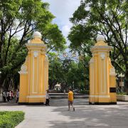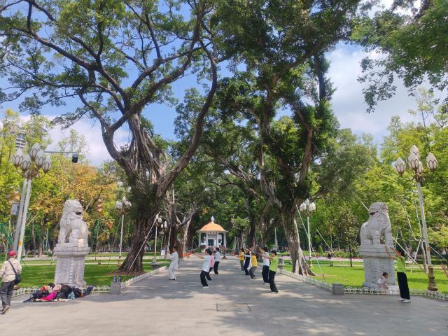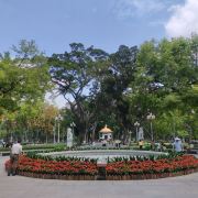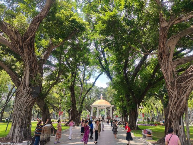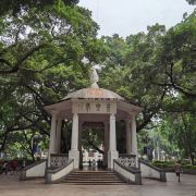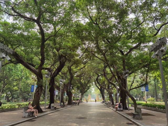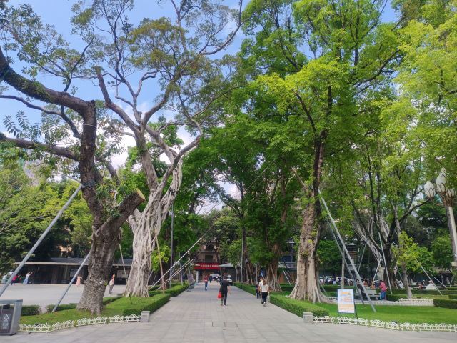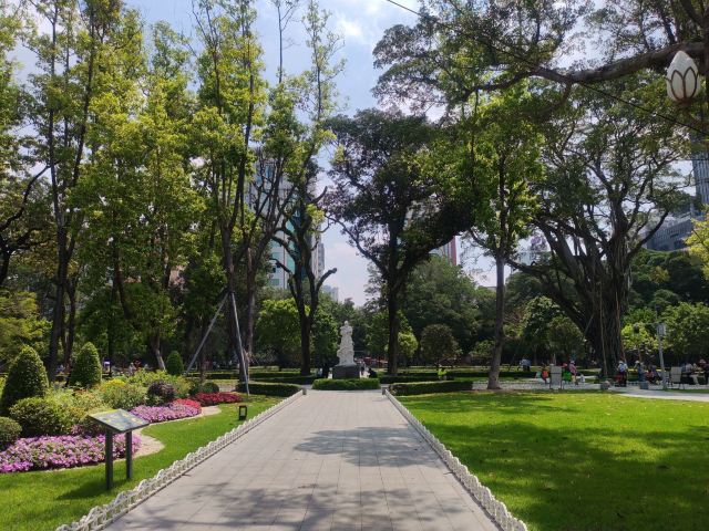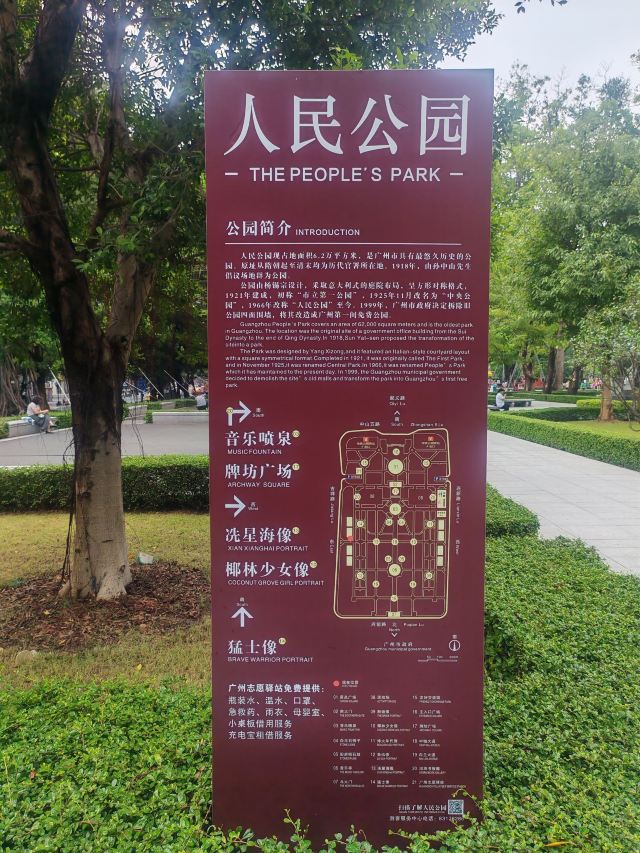 5分 超棒广州人民公园位于公园路,面积4.46公顷。原址从隋朝起至清末均为官署,民国期间是广东咨议局所在地。孙中山在1917年倡议将其改建为公园。翌年建成开放定名为第一公园。1926年11月改名为中央公园,1966年更名为人民公园。园内古木参天,绿化覆盖率75%。园内园林建筑有音乐亭和喷水池。石狮、石屏均为清代遗物,其中一对肇庆白玉石狮已有300多年历史。