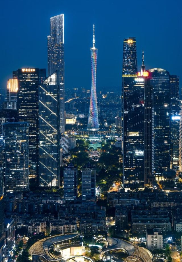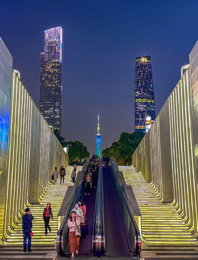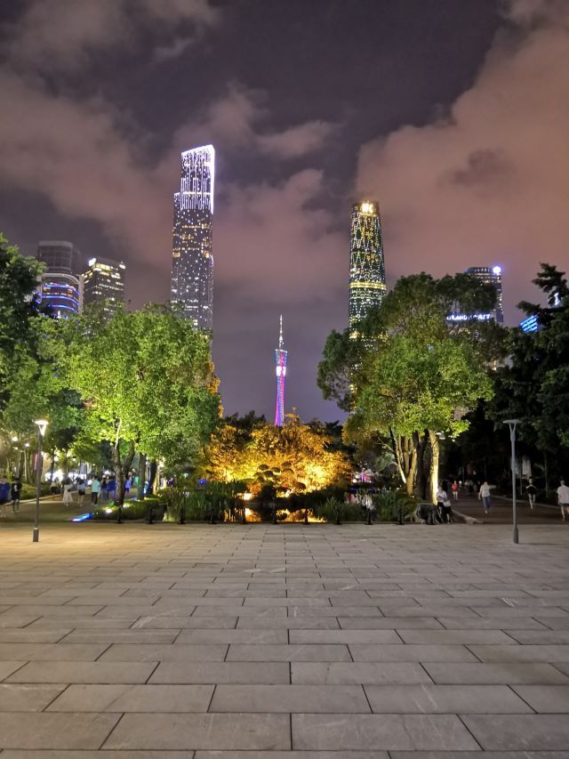 亮点:广州“城市客厅”,地标建筑群环绕(广州大剧院、省博物馆、双子塔)。