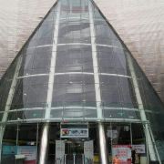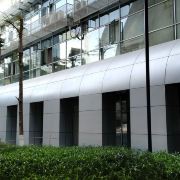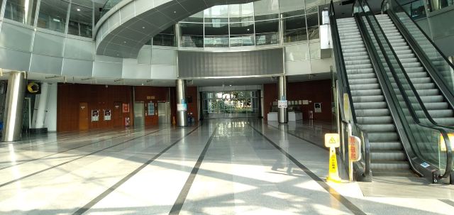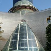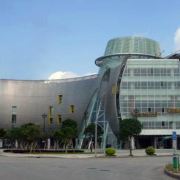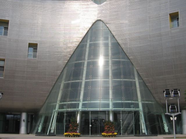 外部形象由南至北由弧形6层和方形7层组合而成,中间有椭圆形的玻璃塔贯穿7层插入其中,连接南北两个形体,整座建筑像卧倒的字母“K”。