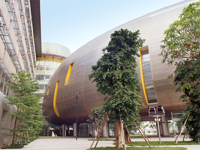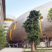广州市第二少年宫采用国际知名设计集团的“探索宝殿”设计方案,整体建筑给人由内而外的通透和明亮感,立面和屋顶可以作为节日和活动主题投影图的屏幕。