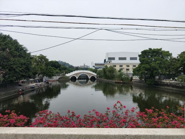 4分 满意上了深井码头,我拍完江边风景照后穿过街道,过了桥,就见到前面很开阔,沿着江边一边漫走,一边欣赏两岸风景。不远处有条小船驶来,两个渔民在赶鱼、捕鱼。往前走左侧是中山公园(下篇介绍),右侧是长洲岛游艇码头,码头于2023年才投入使用,不仅提供游艇停泊、保养及租赁服务,还承接龙舟、帆船、皮划艇等水上运动活动。我向远处望去隐若有一座像广济桥的桥梁,走过去才看清是具有岭南园林风格的跨涌廊桥和水利水闸相结合的中型景观闸桥,名叫新担涌东闸。它不仅具有防洪、通航的功能,还凸显了岭南特色,成为长洲岛的一个重要景观。过了水闸桥,有条很开阔的江,不少船只来往驶来,风景不错。风景特色:新担涌水闸,游艇基地,中山公园(下篇介绍),深井古村,新洲日落。饭点特色:深井烧鹅,游览建议:坐有轨电车到万胜围总站,(途中可游览广州塔、琶醒等景点),或先游黄埔古港,也可直接到万胜围车站乘坐137或262号车到新洲总站,坐轮渡到深井码头(轮渡逢正点或半点一班),走约15分钟左右就到。若遇到好天气,傍晚坐轮船回到新洲码头观看日落,也是很惬意的。