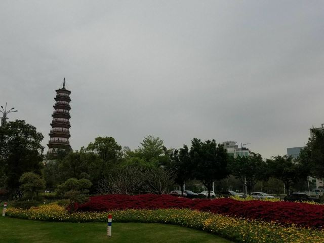 赤岗塔在小蛮腰的南边约900处,北临艺洲路,东为新建绿地广场,塔西面建有围墙,有一个敞开的院门,可自由进入院内的赤岗塔参观,无人售票,但不能登塔,因为门被安上栅栏门并锁住了。
