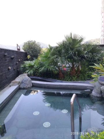 5分 超棒我是周日去的,订的双人套票。有午餐加能量场加温泉。 提前一个星期就订了,因为之前看评论说,有可能会没有午餐,所以我还电话确认了两次。 中午12点到的酒店,环境很优美,停车位也很多,很方便停车。刚停好车就有服务员走过来帮忙开门,还有拿行李。服务态度真的很好,然而我没有给小费的习惯,所以也就没有给了。不知道他的内心OS会不会在暗暗埋怨啊。。 大堂挺气派的感觉。 前台接待员都很客气礼貌。这个礼貌是真的,包括之后去吃午餐,去桑拿干蒸,去泡温泉,一路都很礼貌,都是有问必答。温泉男宾部这边的一个叫黄子恒的帅哥,特别表扬哈哈。有个小细节分享一下。当时我在换衣服,他在跟另外一个客人说了关于如何使用柜子,等下如何走到温泉区之后,转身离开,离开的时候小跑着蹦了一下,然后变回普通走路的样子。这里我感受到的是,他是真心地服务客人,而且是觉得自己做了这些之后,客人是受到帮助的,然后他是很开心,热衷于服务的。 取票的时候耗费了几分钟,因为我是提前一个星期订的,当天中午去到的时候,前台那边没有纸张记录好我的订票,所以就需要写姓名电话让前台去确认。 午餐平时是套餐,但是这次去刚好是自助餐,东西品种不是很多,但是足够吃的了。午餐供应是12点到1点30分。 我们是吃完后,是先去换衣服进去了能量场,干蒸。相当于桑拿吧。有大概6个房,不同的功效。每个进去呆几分钟,也是不错的。这里注意一点,就是去能量场的人,可以在换衣服的地方,询问那些服务员,让他们给你一套进去能量场的衣服,到时候去完能量场就可以还给他们。不需要钱。 然后我们就去泡温泉了。温泉在4楼,从3楼的换衣服地方直接就能走上4楼。温泉很多种池子,感觉比较干净,风景也很好。我们去的时候,刚好出了太阳,挺舒服的,然后也刚好是刮风,有点凉,不过泡水就舒服了。 温泉区里的东西是需要钱买的,5块一条热狗,等等。 3楼休息室大堂有免费的水果供应。有西瓜橙番石榴等等,还有饮料。 就这样吧。