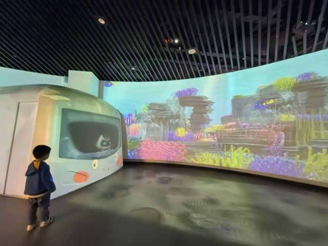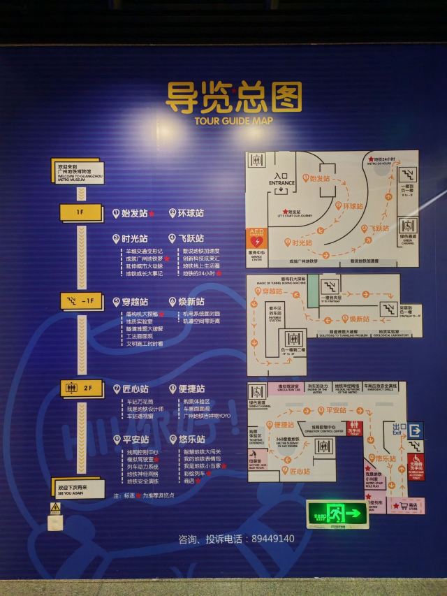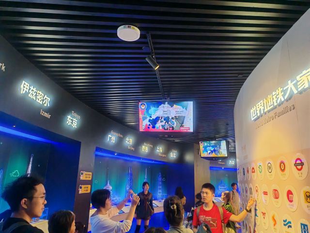展示区分布三个楼层,负一层为广州地质状况及地铁建设过程展示区,一层为轨道交通行业及广州地铁发展历程展示区二层为地铁运营安全体验区。馆内10个站点,38个主题展项,从视觉、听觉、触觉以及仿真模型、VR科技、场景打造、游戏探索、地铁岗位角色体验等形式,全方位为儿童营造立体科普展示空间。