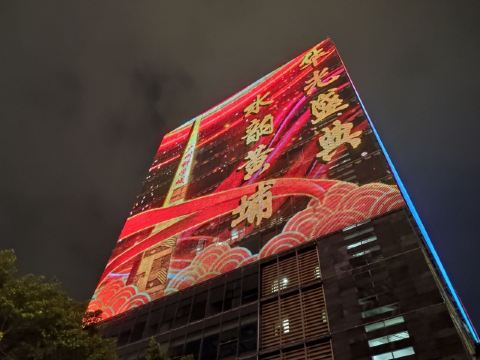 富有科技元素的休闲广场,这里有全息投影的《黄埔画卷》光影秀、玻璃幕墙变身“科技魔方”的总部经济大楼等,带给游客一场视听盛宴。